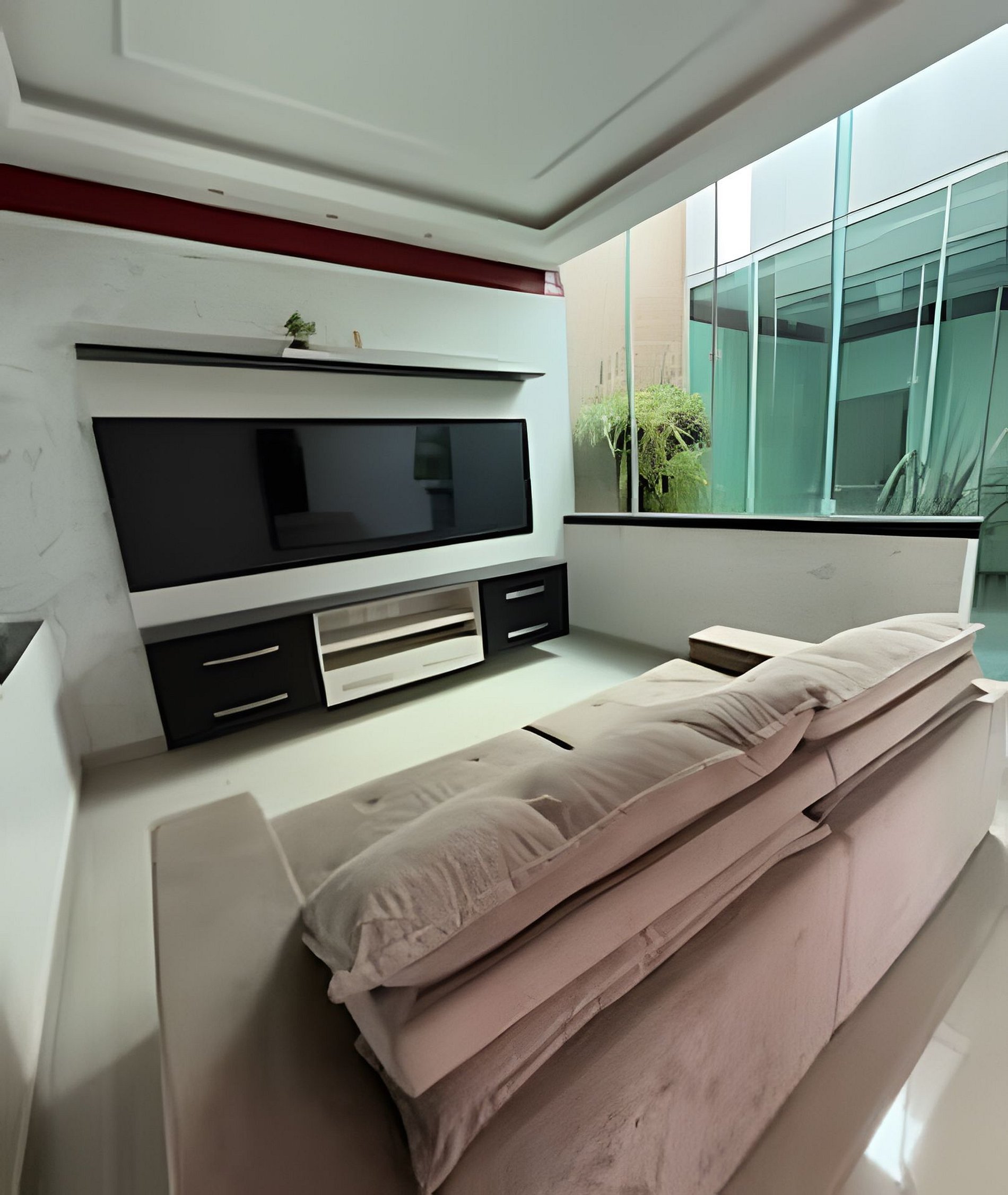 Sala de estar ampla com TV 55” e sofá retrátil, ideal para relaxar após um dia cheio. Três quartos, sendo uma suíte completa c mesa de escritório e armários planejados. Cozinha equipada com todos os utensílios para preparar suas refeições favoritas. Área gourmet com churrasqueira, perfeita para reunir a família e os amigos. Garagem coberta para dois carros grandes + tomada para carro elétrico. Localizada em frente a uma praça arborizada.