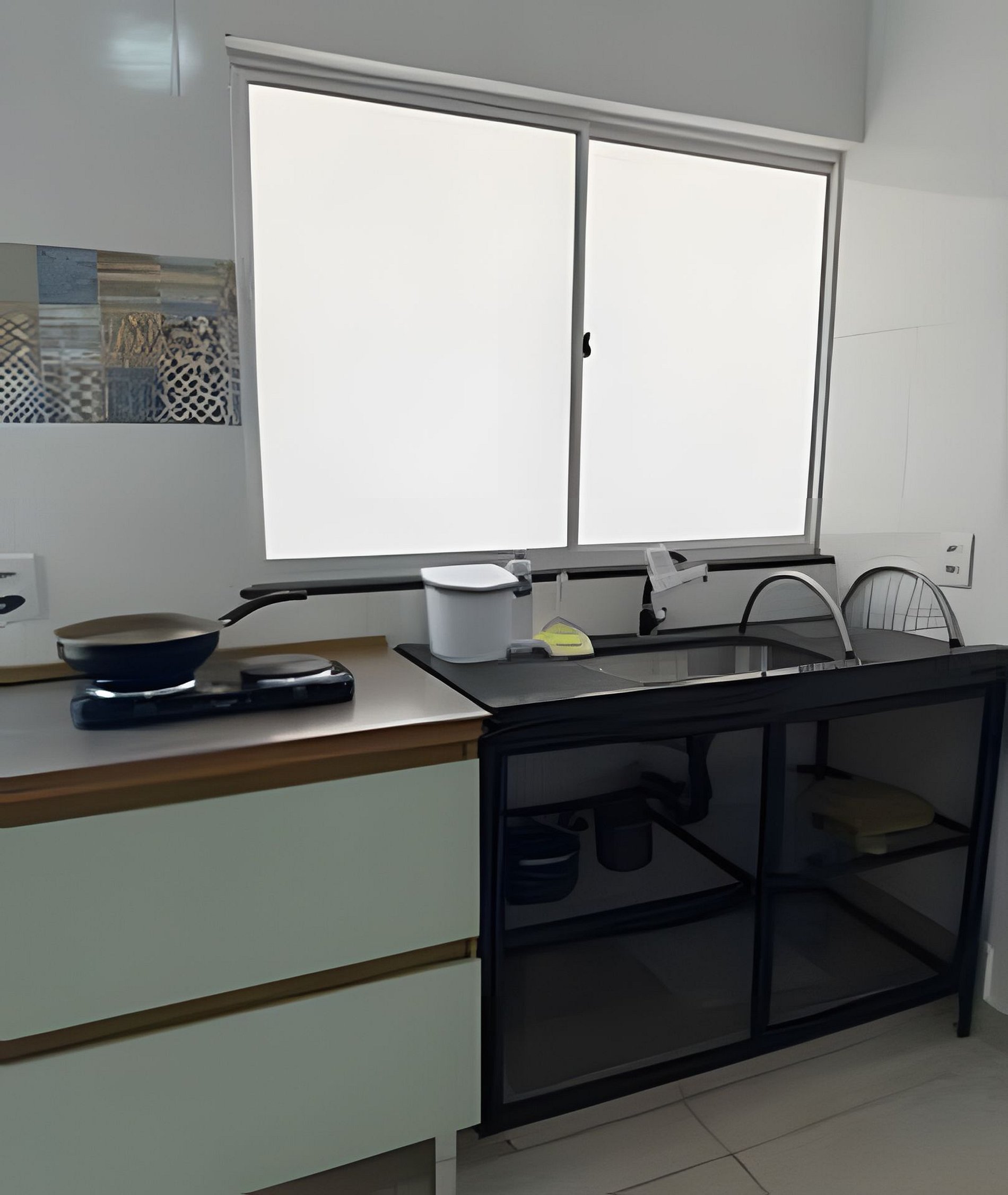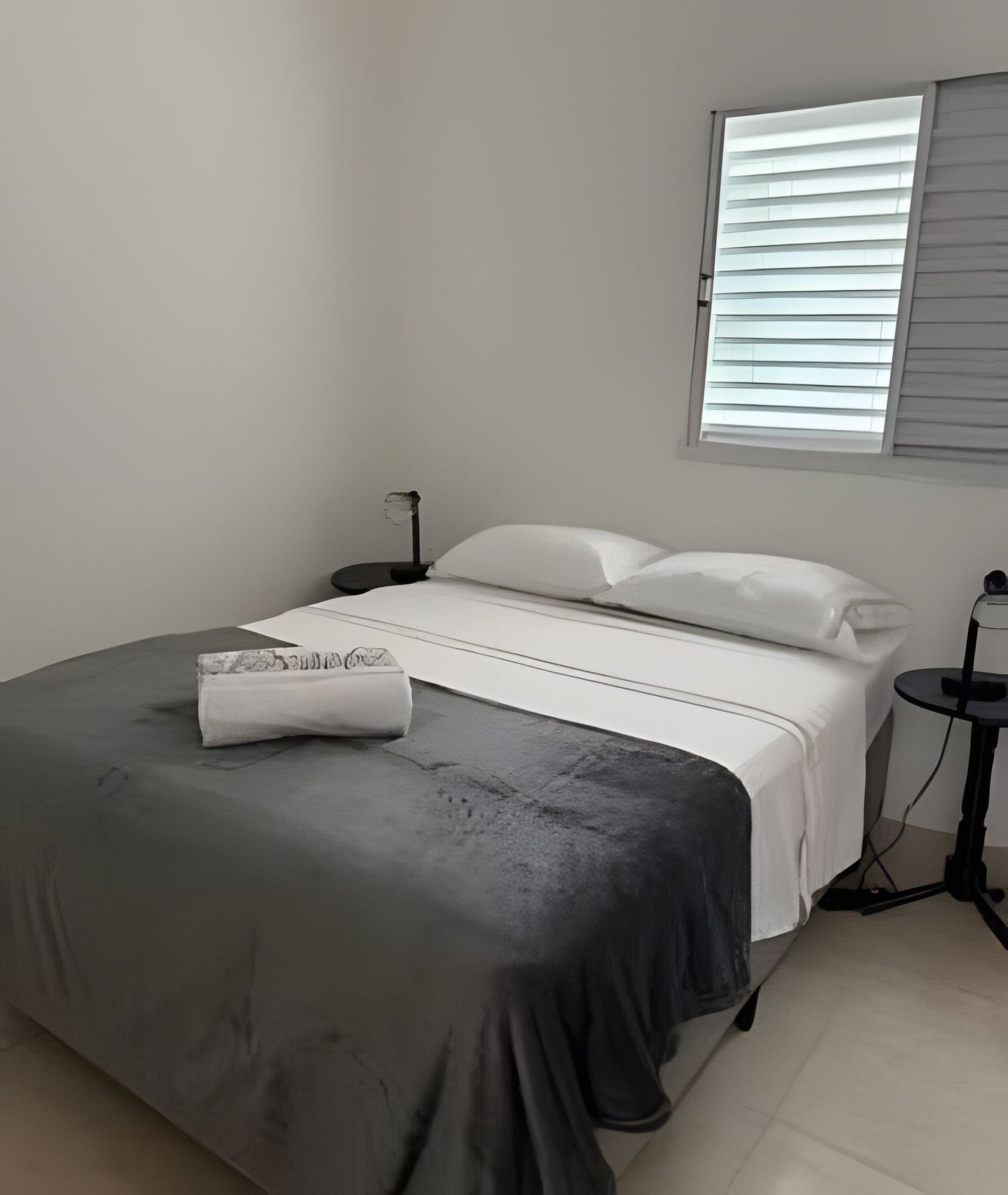 Sinta-se em casa neste loft moderno, pensado para oferecer praticidade e conforto durante sua estadia. Quarto aconchegante com cama de casal, enxoval completo. Cozinha equipada com geladeira, fogão portátil, micro-ondas e utensílios básicos para suas refeições. Sala de jantar funcional com mesa para duas pessoas. Banheiro com chuveiro elétrico, box de vidro e bancada com pia de vidro. Ambiente arejado e iluminado, com janelas amplas e decoração minimalista que trás aconchego.
